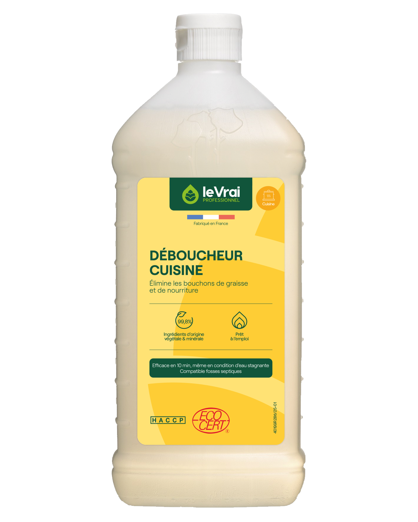 – Dissout efficacement les graisses et résidus alimentaires pour des canalisations dégagées durablement