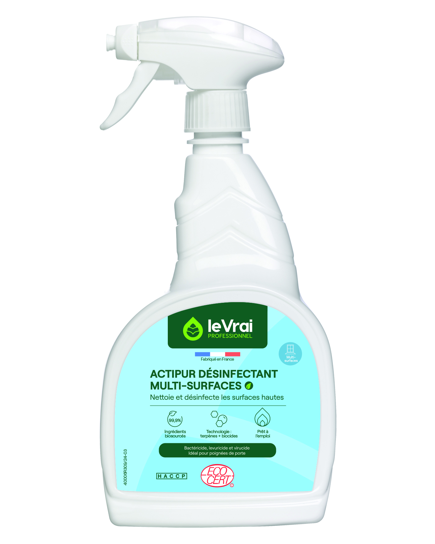 Ne pas appliquer sur les surfaces sensibles aux acides comme le marbre, le béton, le ciment, les bois huilés ou cirés. Il est recommandé de tester la compatibilité avec les matériaux sur une surface peu visible avant toute première utilisation. Pulvériser sur une lavette et nettoyer les surfaces, laisser agir 5 à 30 min selon l’activité recherchée, essuyer. Rincer à l’eau potable lorsque les surfaces sont destinées à entrer en contact avec les denrées alimentaires (conformément à l’arrêté du 19/12/2013). Utilisable sur vitres et inox.